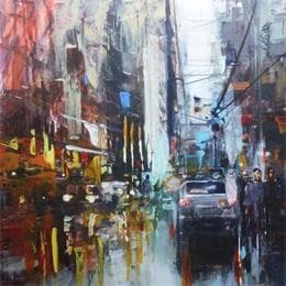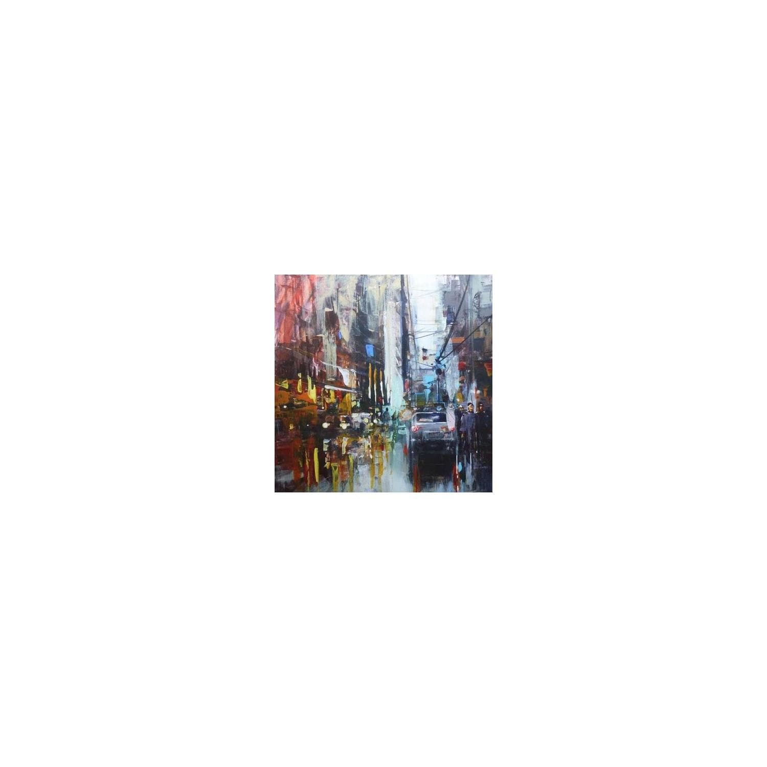 L'artiste a utilisé la technique Acrylique pour créer cette peinture petit format sur carton de style Figuratif sur le thème Urbain.