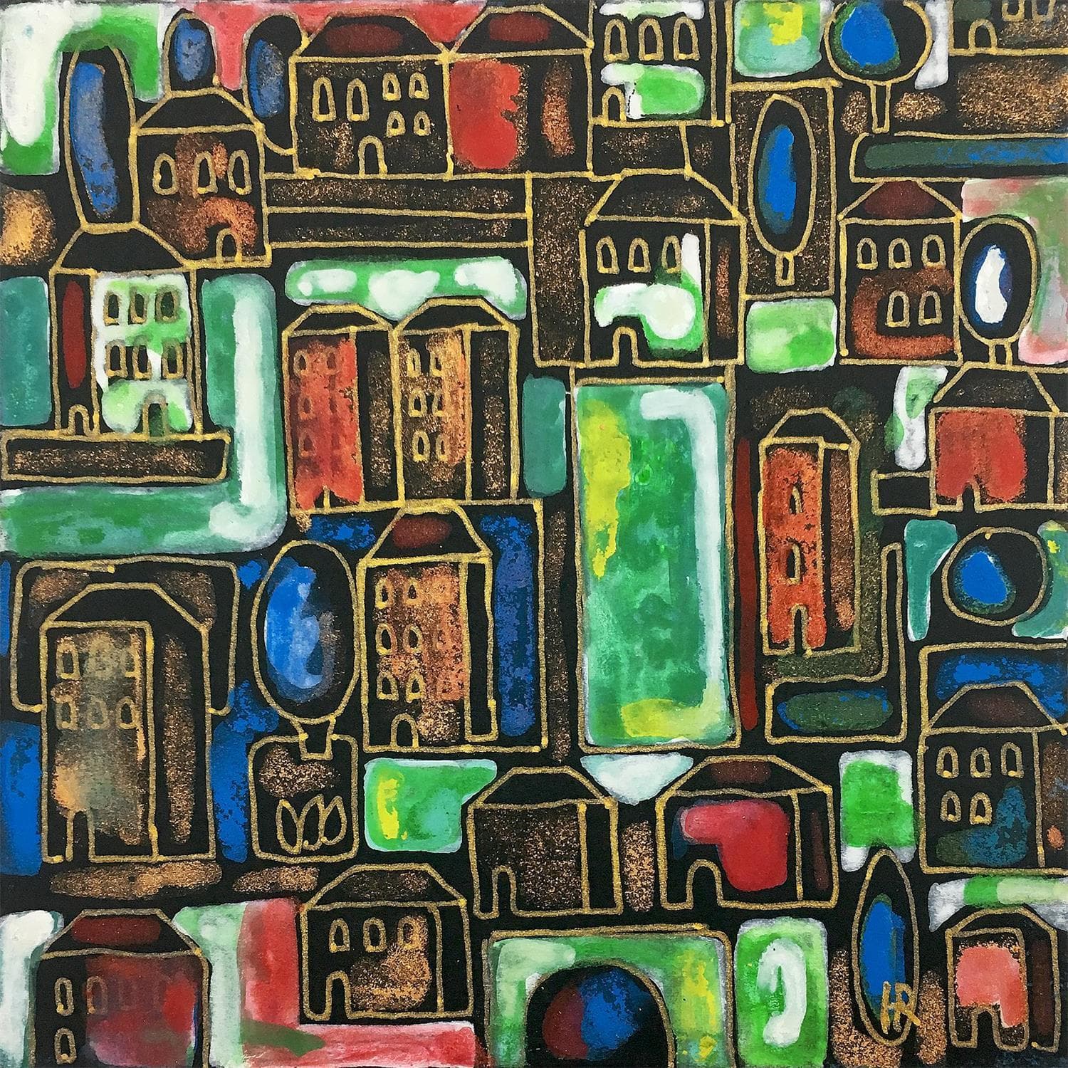 G88 Green townPeinture G88 Green town par Ragas Huub | Tableau Figuratif Urbain Acrylique