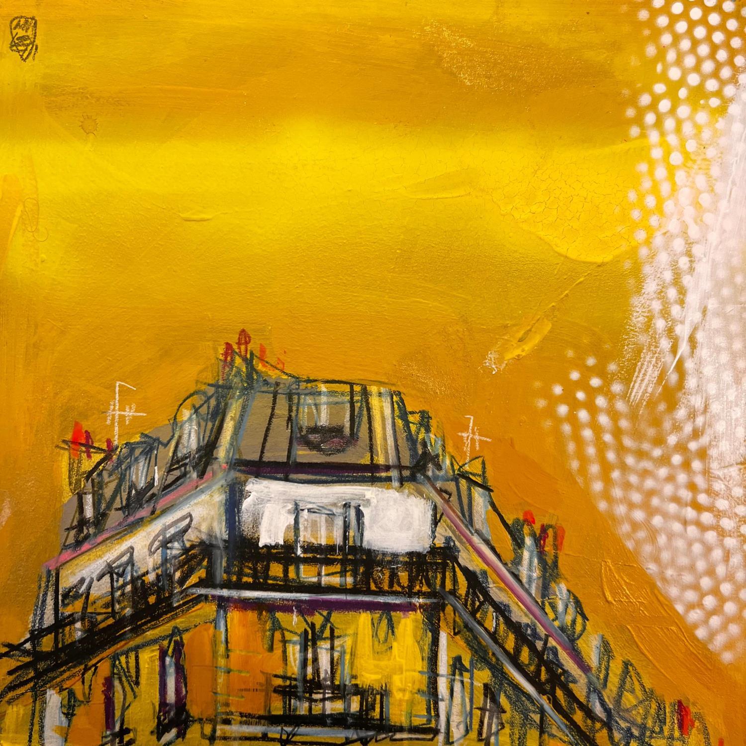 L'artiste a utilisé les techniques Acrylique, Pastel pour créer cette peinture petit format sur Papier de style Figuratif sur les thèmes Urbain, Architecture.