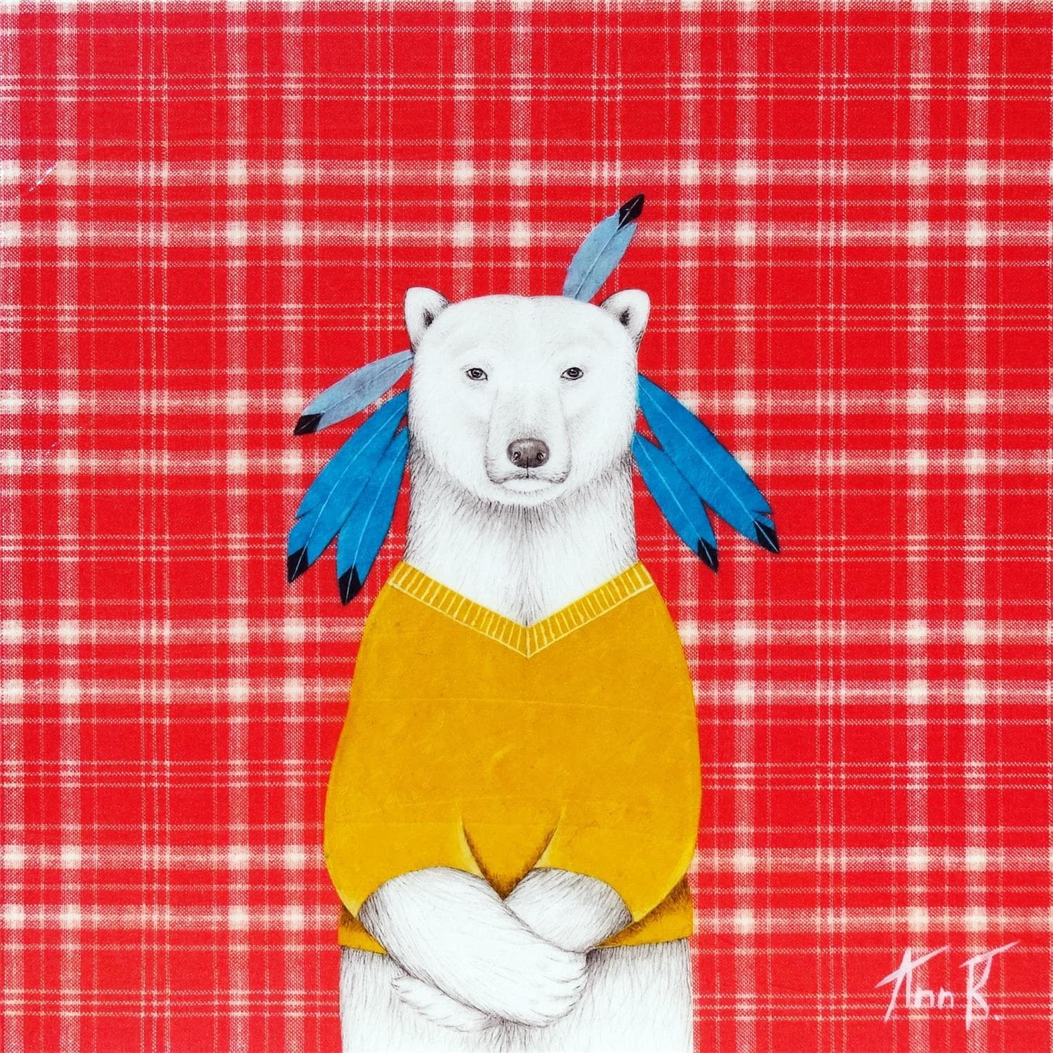 Cette oeuvre d'art contemporain unique et originale "Chef à plumes bleues" a été réalisée par l'artiste contemporain Ann R.