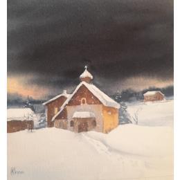 Church in the mountainsPeinture Church in the mountains par Lida Khomykova | Tableau Figuratif Aquarelle