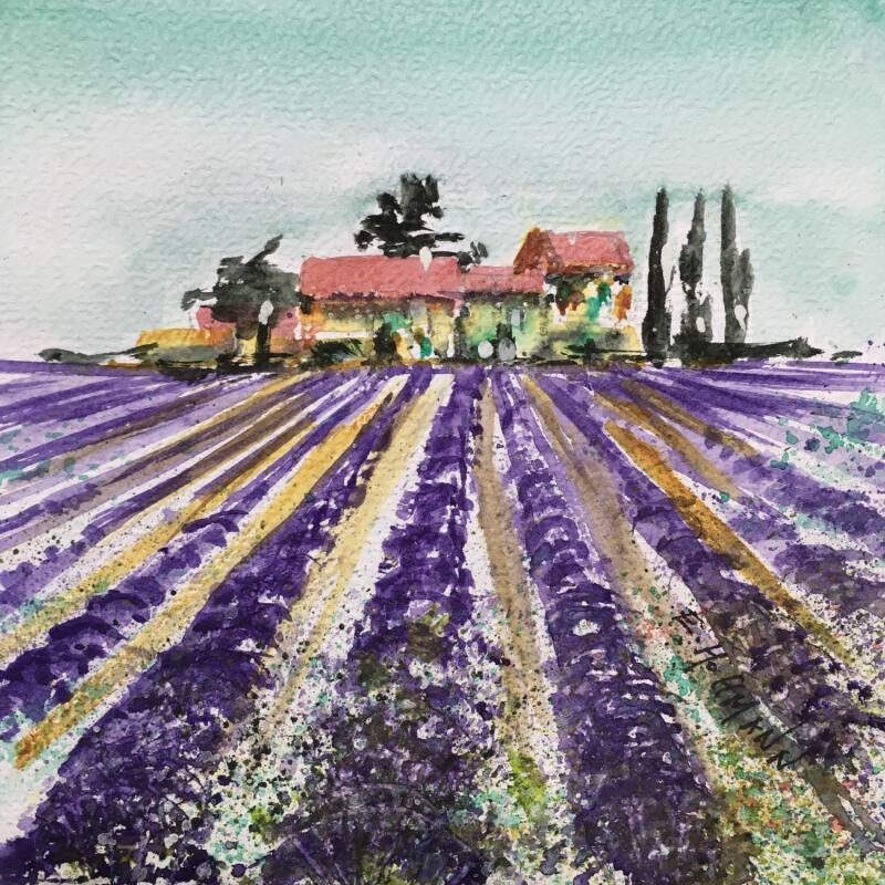L'artiste a utilisé la technique Aquarelle pour créer cette peinture petit format sur Papier de style Figuratif sur le thème provençal