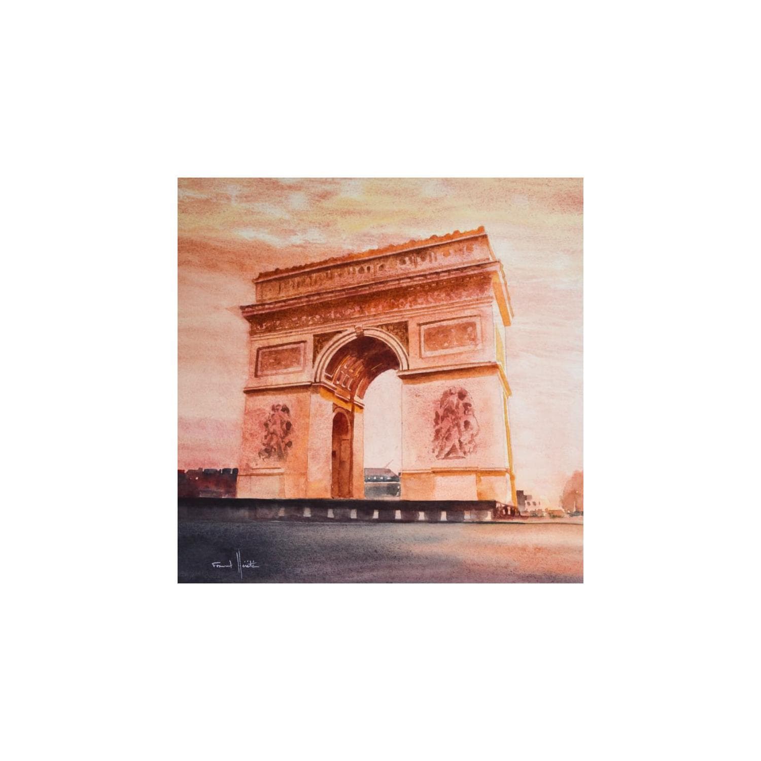 Issu d’une formation à la prestigieuse école d’illustration Émile Cohl, Frank Hérété travaille pendant dix-huit ans comme directeur artistique dans une agence de communication. En 2013, il se consacre pleinement à la peinture et sa longue pratique de l’huile le pousse à s’orienter vers la figuration. Il découvre l’aquarelle et devient l’un des peintres les plus prolifiques de la région lyonnaise. Son travail de portraitiste lui vaudra également de gagner plusieurs prix. Il peint principalement en extérieur, souvent sur les berges de la Saône qui constituent son atelier. Toujours à l’affût de nouveaux sujets, il remplit de nombreux carnets d’études et de détails pris sur le vif, et sublime inlassablement sa ville dans ses œuvres époustouflantes de vie.