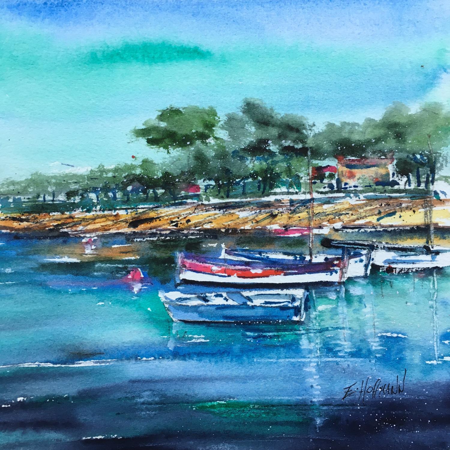 L'artiste a utilisé la technique Aquarelle pour créer cette peinture petit format sur Papier de style Figuratif sur le thème Marine