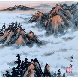 Clouds Mountain Peinture Clouds Mountain  par Yu Huan Huan | Tableau Figuratif Paysages Nature Aquarelle Encre