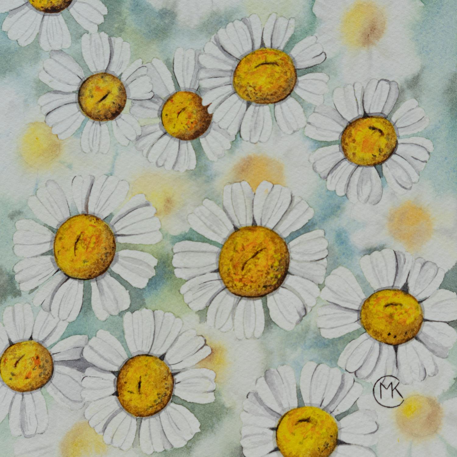 Champ de camomillesPeinture Champ de camomilles par Kuprina Carle Maria | Tableau Figuratif Nature Aquarelle