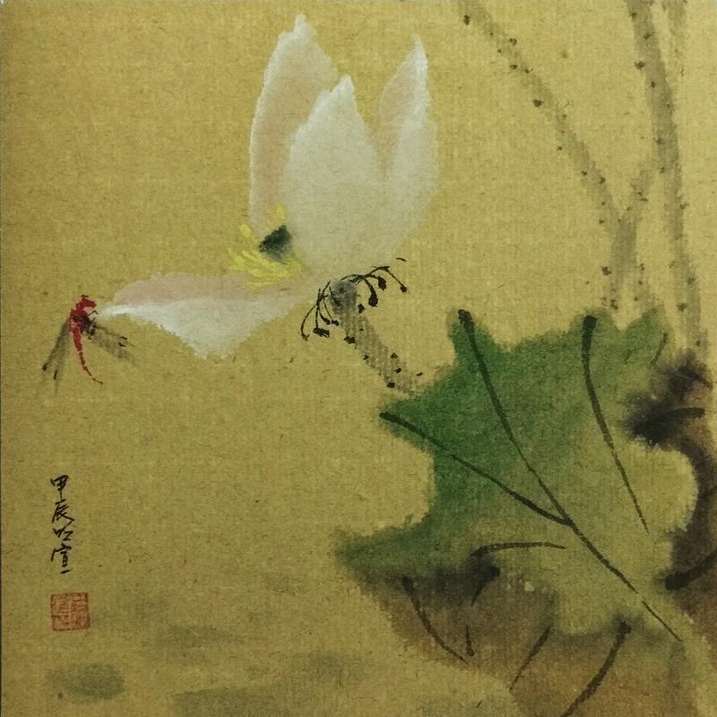 Cette oeuvre d'art contemporain unique et originale "Lotus and dragonfly" a été réalisée par l'artiste contemporain Du Mingxuan.