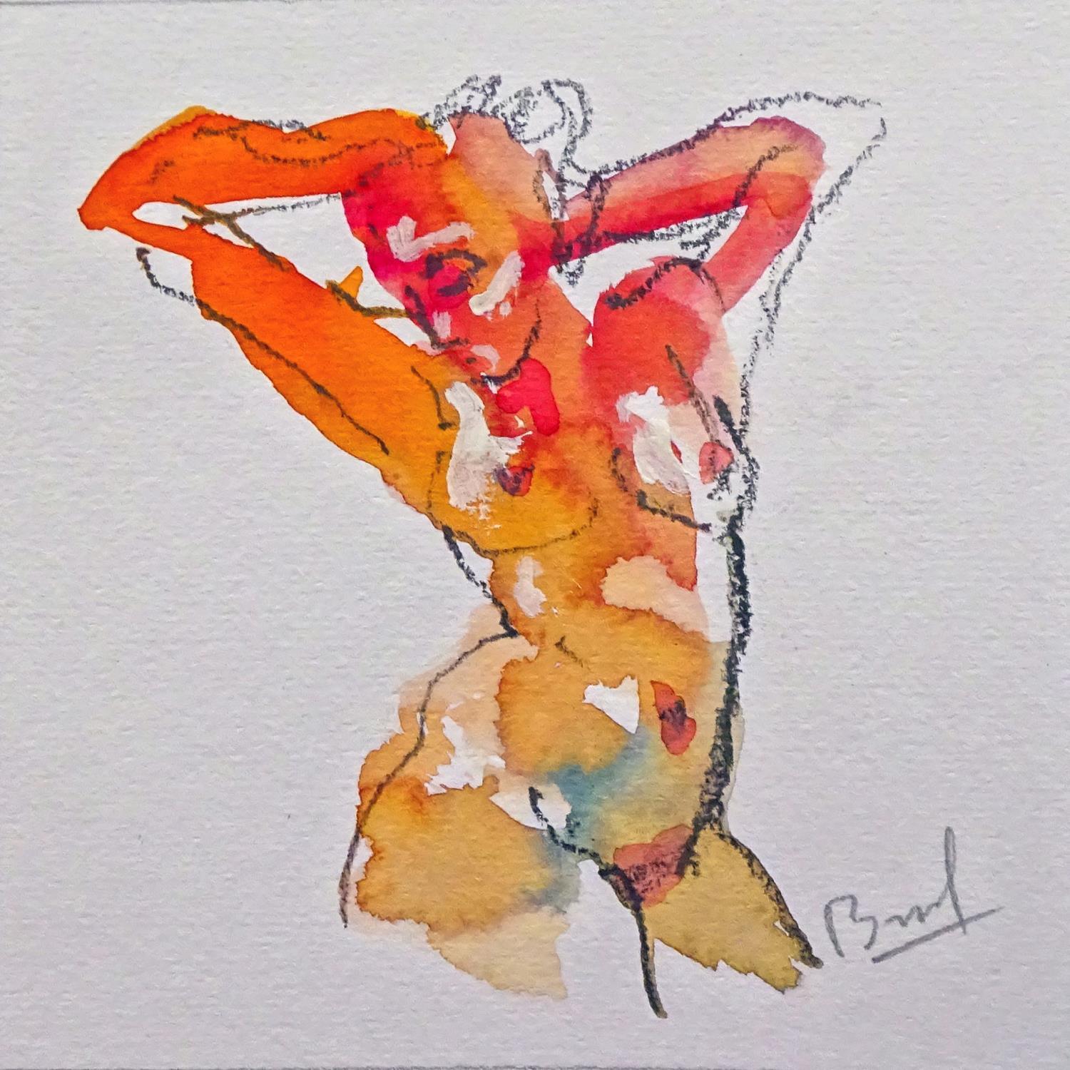 L'artiste a utilisé la technique Aquarelle pour créer cette peinture petit format sur papier de style Figuratif sur le thème nu.
