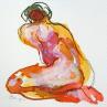 Peinture Méline accroupie de dos par Brunel Sébastien | Tableau Figuratif Nu Aquarelle