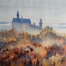 Dans la brume du châteauPeinture Dans la brume du château par Jones Henry | Tableau Figuratif Paysages Aquarelle