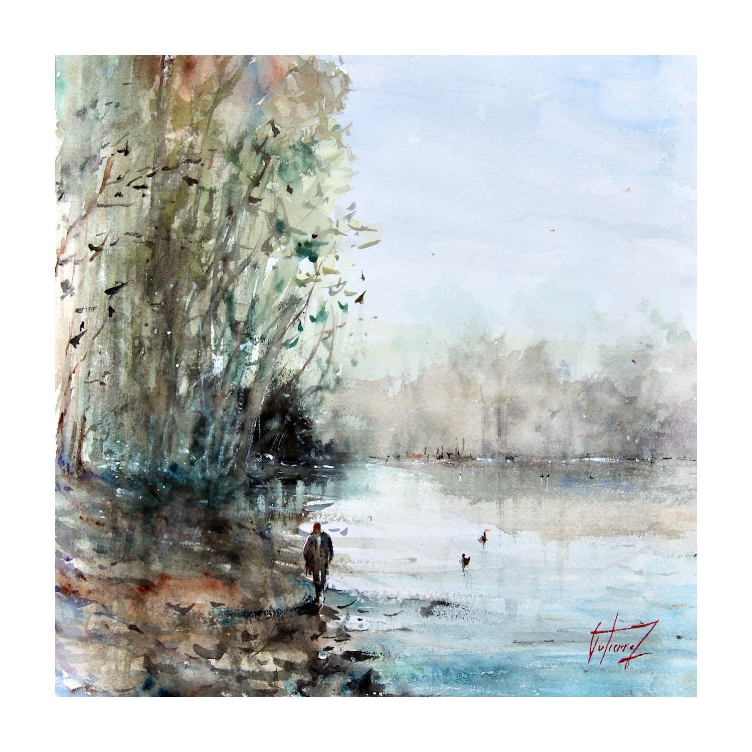 Peinture La Loire en Hiver par Gutierrez | Tableau Figuratif Paysages Aquarelle