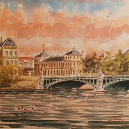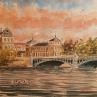 L'artiste a utilisé la technique Aquarelle pour créer cette peinture petit format sur Papier de style Figuratif sur le thème Urbain.