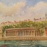 L'artiste a utilisé la technique Aquarelle pour créer cette peinture petit format sur Papier de style Figuratif sur le thème Urbain.