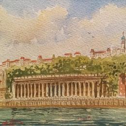 Peinture Promenade en bateau  par De León Lévi Marcelo | Tableau Figuratif Urbain Aquarelle