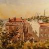 L'artiste a utilisé la technique Aquarelle pour créer cette peinture petit format sur Papier de style Figuratif sur le thème Urbain.