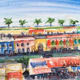 L'artiste a utilisé la technique Aquarelle pour créer cette peinture petit format sur Papier de style Figuratif sur le thème Urbain.