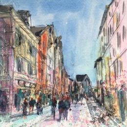 L'artiste a utilisé la technique Aquarelle pour créer cette peinture petit format sur Papier de style Figuratif sur le thème Urbain.