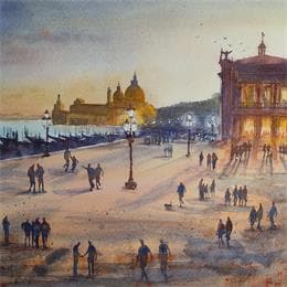 Peinture Piazza Glow par Jones Henry | Tableau Figuratif Urbain Aquarelle