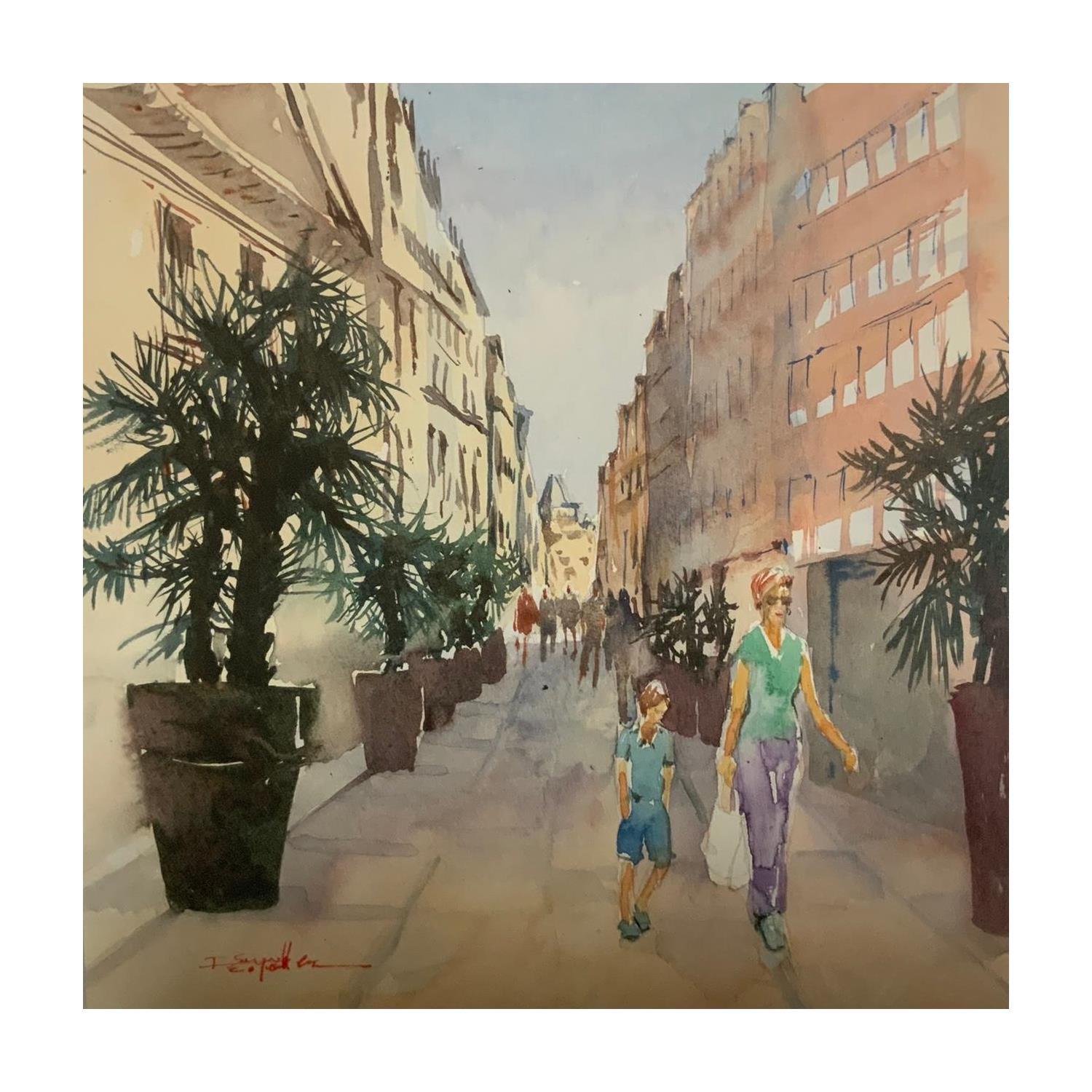 L'artiste a utilisé la technique Aquarelle pour créer cette peinture petit format sur Papier de style Figuratif sur le thème Urbain.