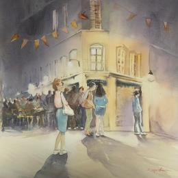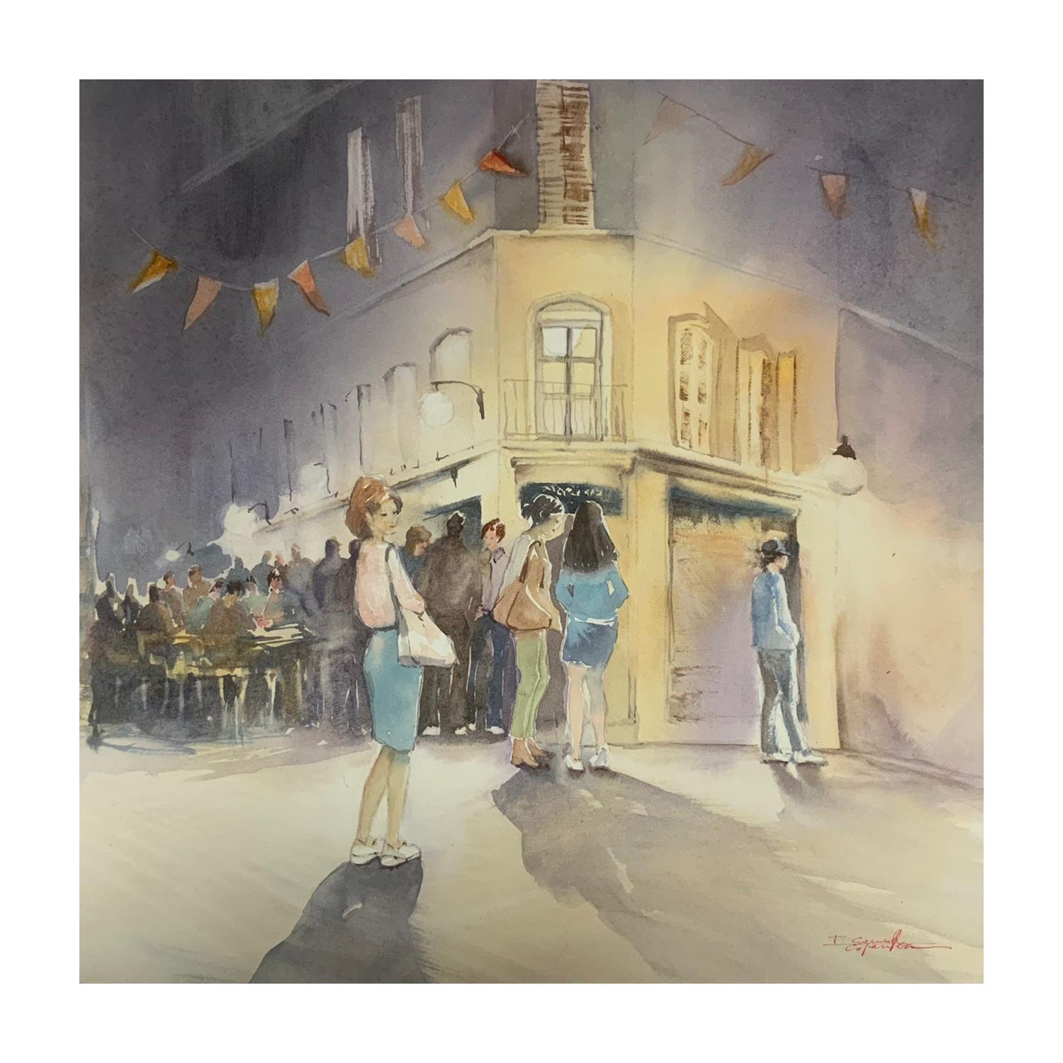 L'artiste a utilisé la technique Aquarelle pour créer cette peinture petit format sur Papier de style Figuratif sur le thème Urbain.