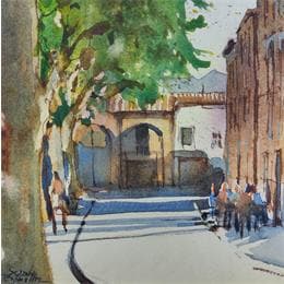 L'artiste a utilisé la technique Aquarelle pour créer cette peinture petit format sur papier de style Figuratif sur les thèmes Urbain, scènes de vie.