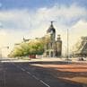Red tramPeinture Red tram par Min Jan | Tableau Figuratif Urbain Aquarelle