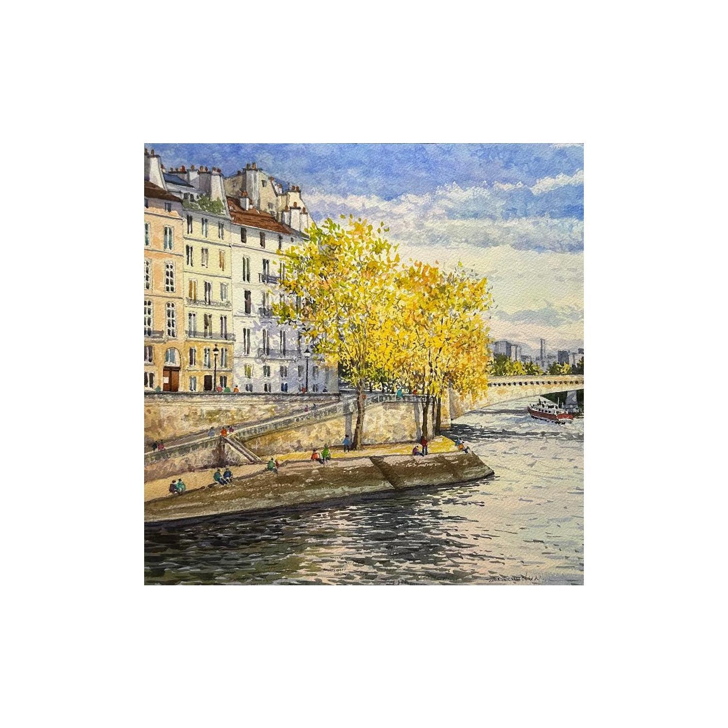 Paris l'ile saint LouisPeinture Paris l'ile saint Louis par Decoudun Jean charles | Tableau Figuratif Urbain Aquarelle