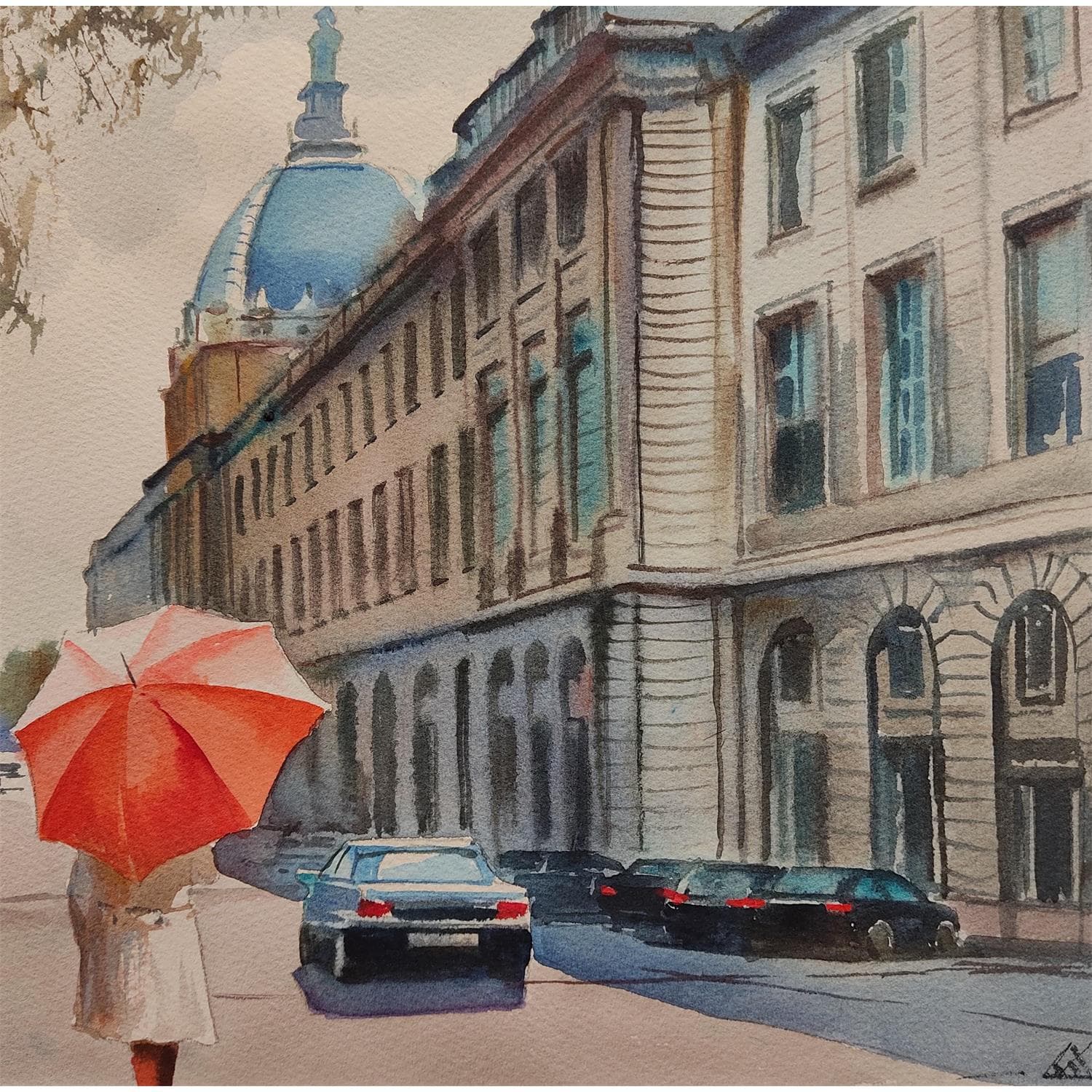L'artiste a utilisé la technique Aquarelle pour créer cette peinture petit format sur papier de style Figuratif sur le thème Urbain.