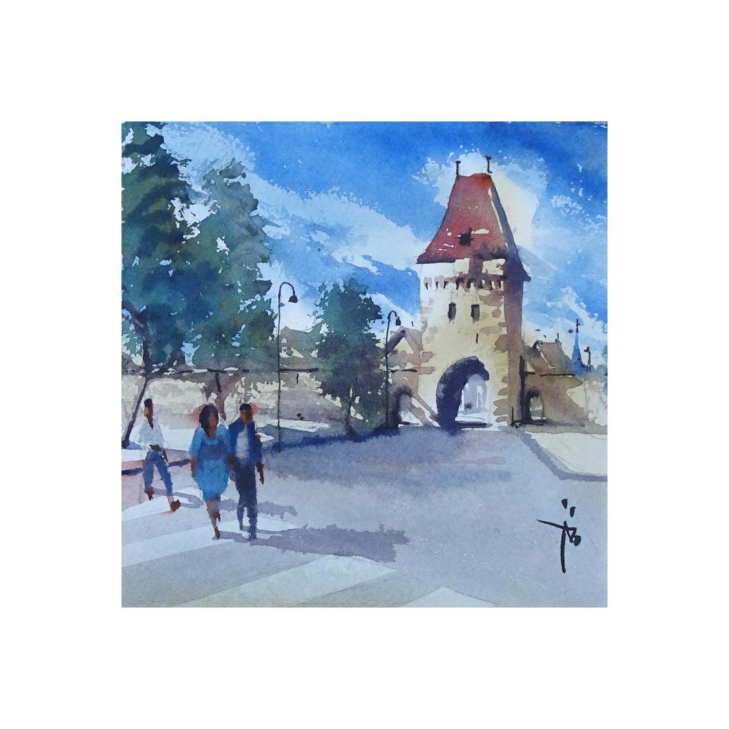 En passant par l'AlsacePeinture En passant par l'Alsace par Abbatucci Violaine | Tableau Figuratif Aquarelle