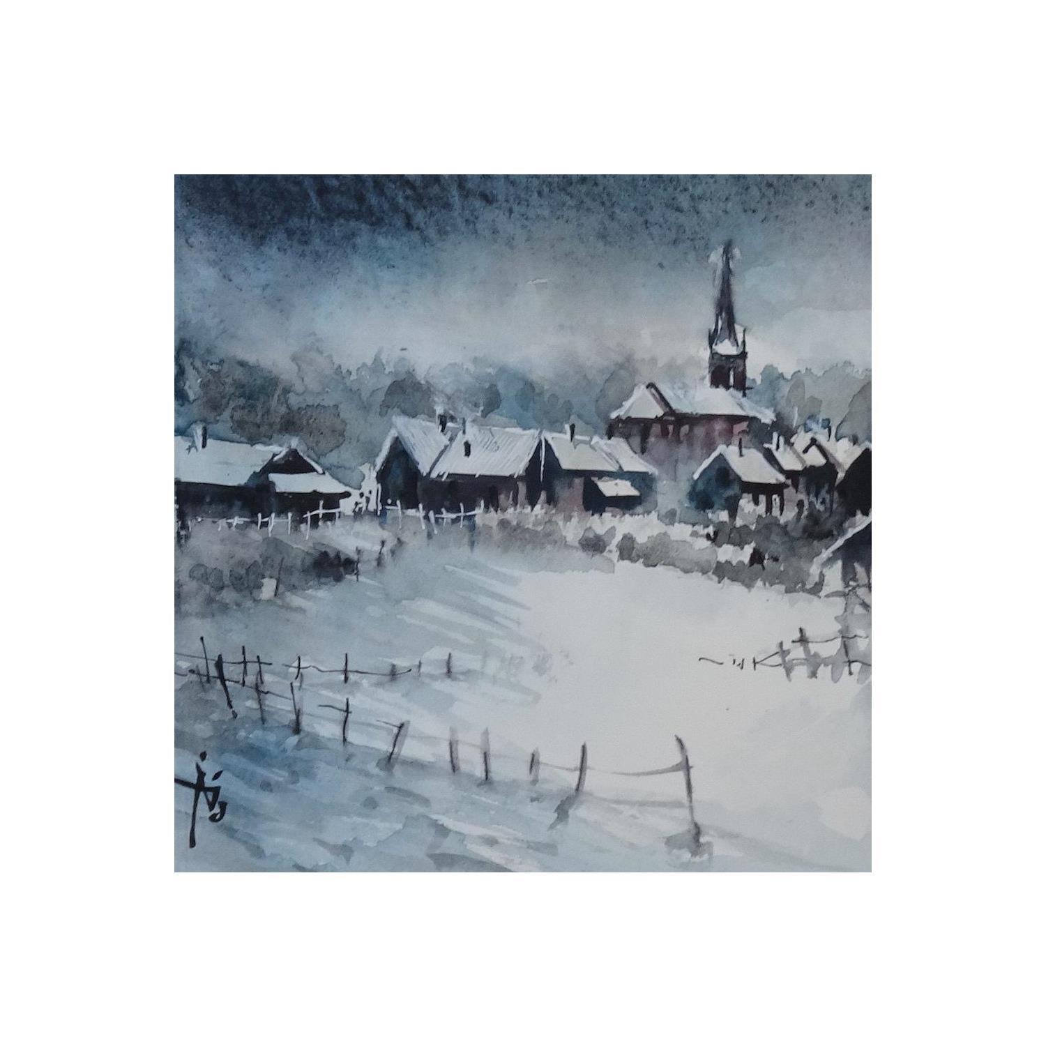 Temps d'hiverPeinture Temps d'hiver par Abbatucci Violaine | Tableau Figuratif Aquarelle