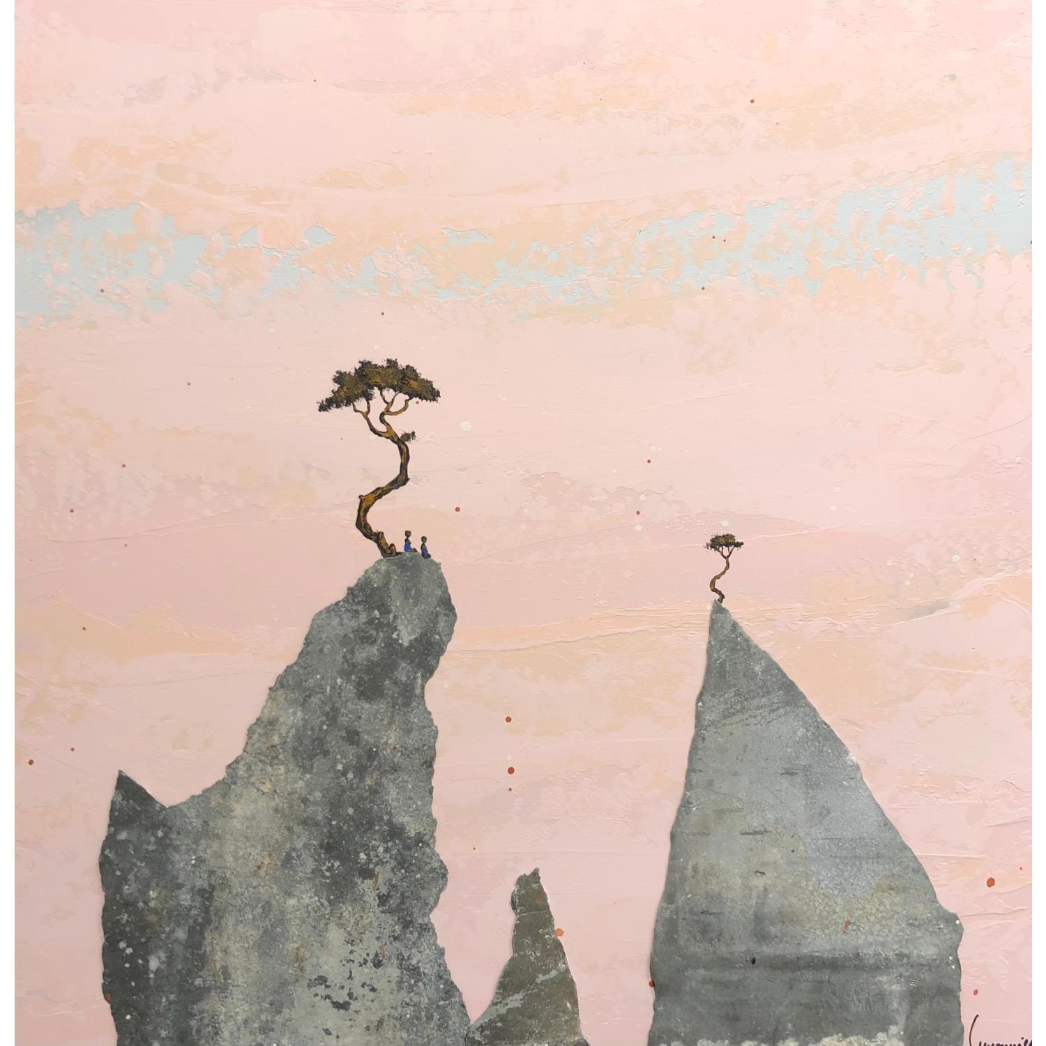 Les peintures de François-Régis Lemonnier explorent l’homme et son environnement. Dans ses tableaux, de touts petits personnages flottent dans de grands espaces, se déplacent et se rencontrent, faisant l’expérience de leur propre condition, la solitude, la joie, la pauvreté, la solidarité, l’oubli. Leur toute petite taille met en avant leur grande humilité : l’homme et sa destinée, singulière, heureuse ou dramatique, dans un monde en constant changement.Loin de la représentation et du réalisme, les peintures de FrançoisRégis Lemonnier prennent de la hauteur et constituent des fenêtres ouvertes sur le monde, un monde immense, avalant un homme de plus en plus petit, presque invisible. Ces voyages au centre de l’univers sont également des voyages à l’intérieur de nous-mêmes, au plus profond de notre être intérieur, là où le corps et la forme disparaissent pour laisser place à l’évanescence de l’esprit.