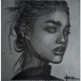 L'artiste a utilisé les techniques Bois, Métal, Acrylique pour créer cette peinture grand format sur Bois de style Figuratif sur le thème Portraits.