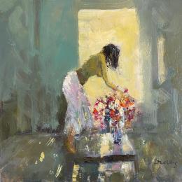 L'artiste a utilisé les techniques bois, Huile pour créer cette peinture petit format sur bois de style Figuratif sur le thème scènes de vie.