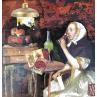 L'artiste a utilisé la technique Collage pour créer cette peinture petit format sur Carton toilé de style Figuratif sur le thème Scènes de vie.