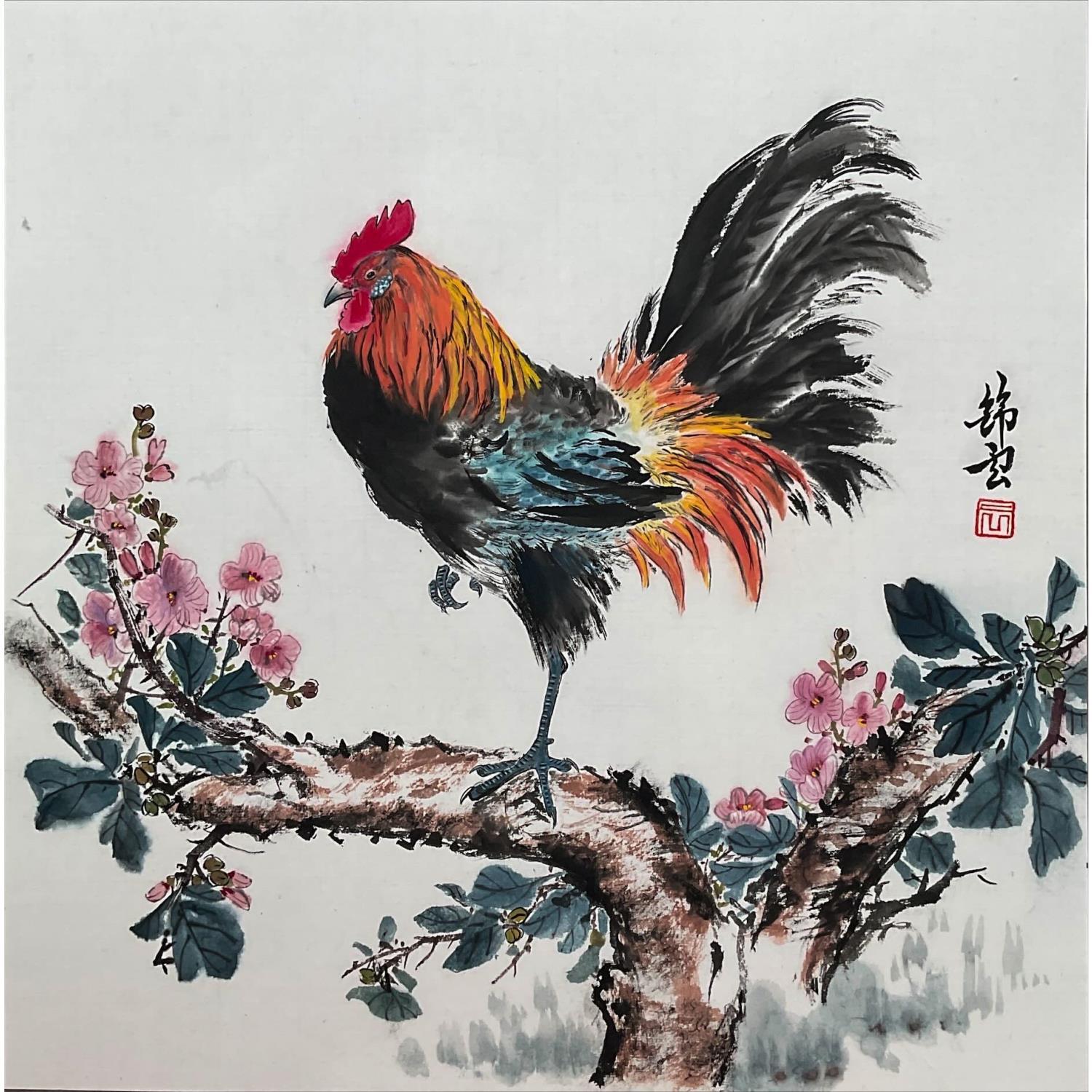 CoqPeinture Coq par Tayun | Tableau Figuratif Animaux Aquarelle Encre