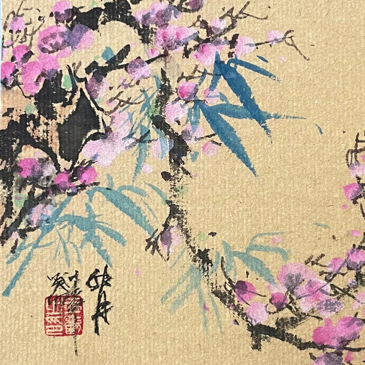 Peinture Cherry blossom par Yu Huan Huan | Tableau Figuratif Nature Encre