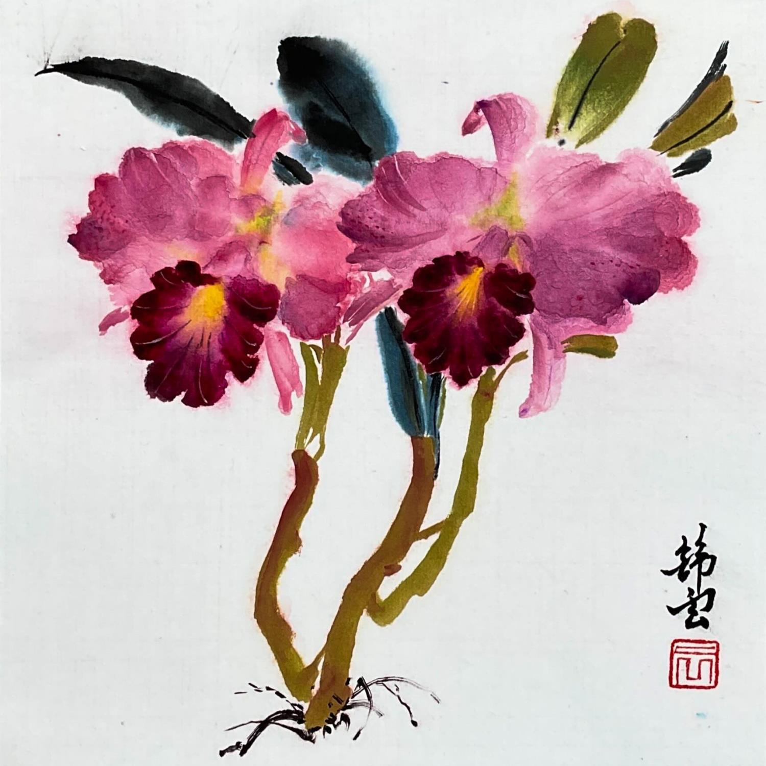 OrchidéesPeinture Orchidées par Tayun | Tableau Figuratif Natures mortes Encre