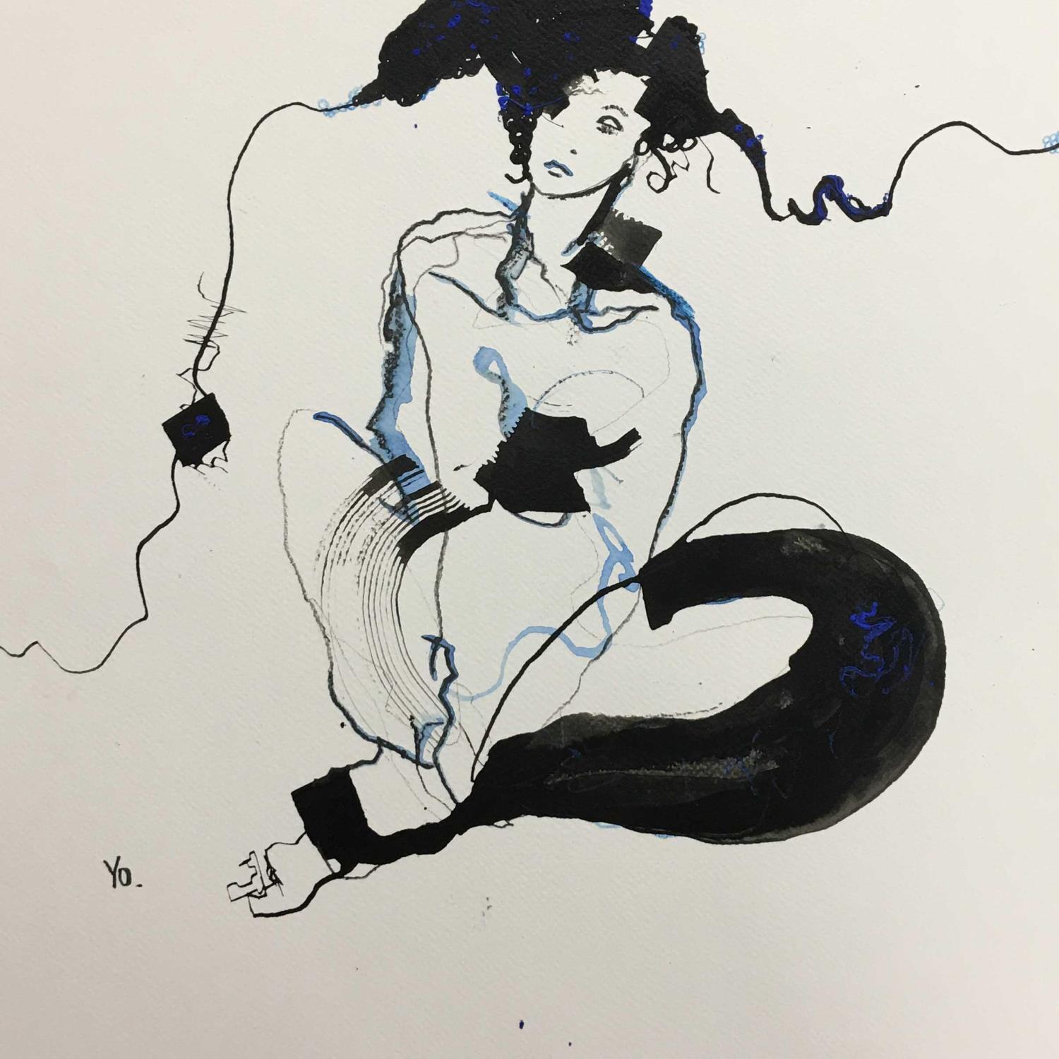 Cette forme d’expression la fascine et lui permet de conter des histoires. Le corps est un point d’ancrage dans son travail. Il est l’enveloppe singulière d’émotions et d’humeurs. Yo allie son énergie et celle de ses modèles pour dessiner avec instinct et précision les mouvements et attitudes des corps.