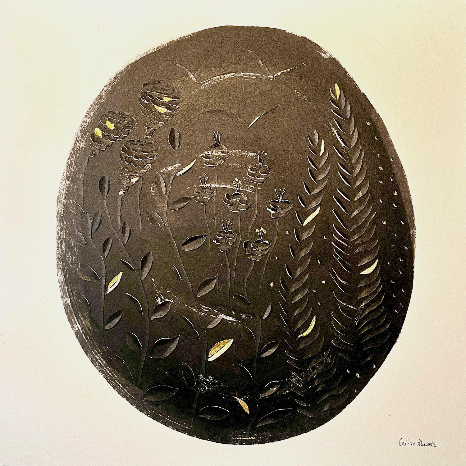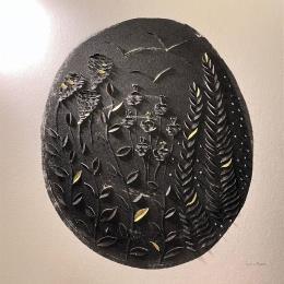 L'artiste a utilisé les techniques Encre de Chine sur Carton Bois sculpté pour créer cette peinture petit format sur Carton de style Matiérisme Figuratif sur le thème Floral Minimaliste.