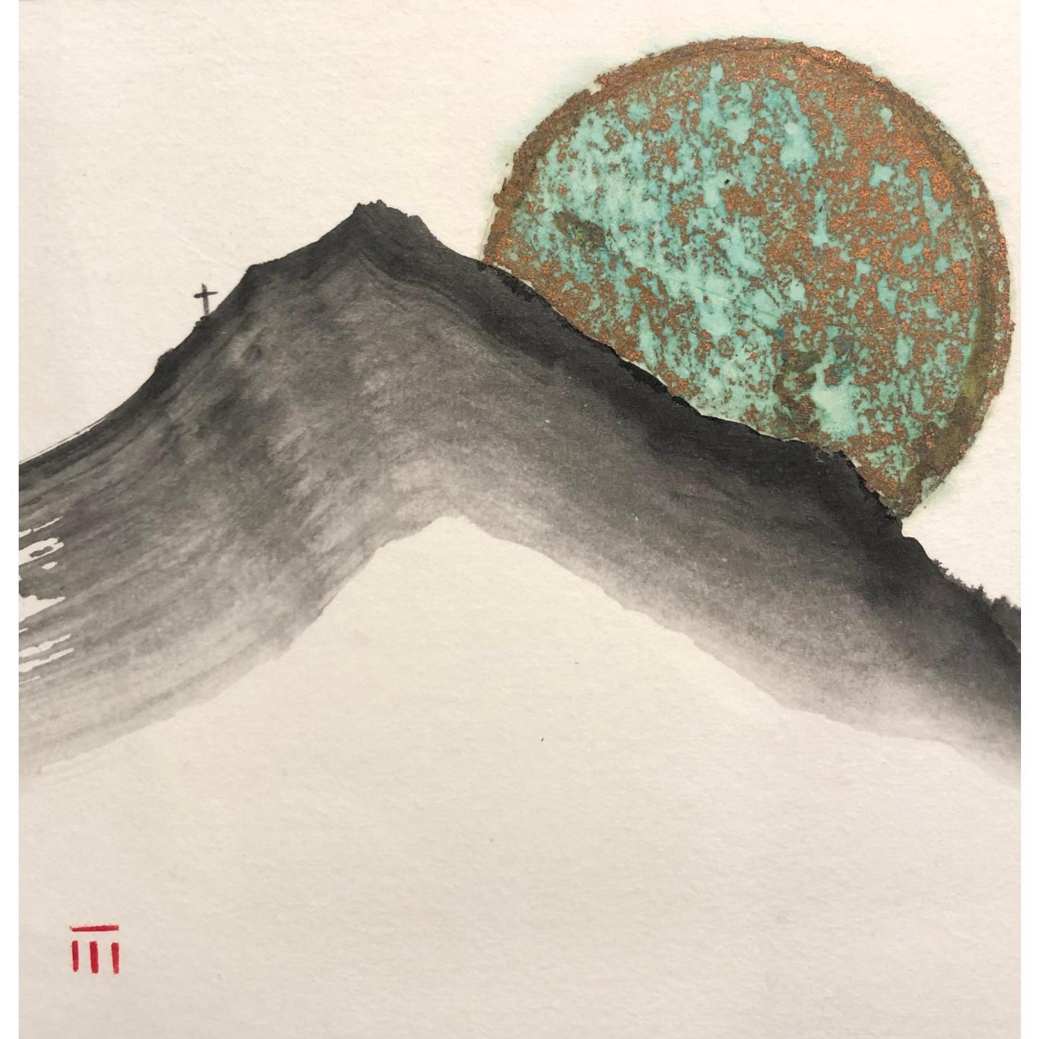 L'artiste a utilisé la technique Encre pour créer cette peinture petit format sur Papier de style Figuratif sur le thème Paysages.
