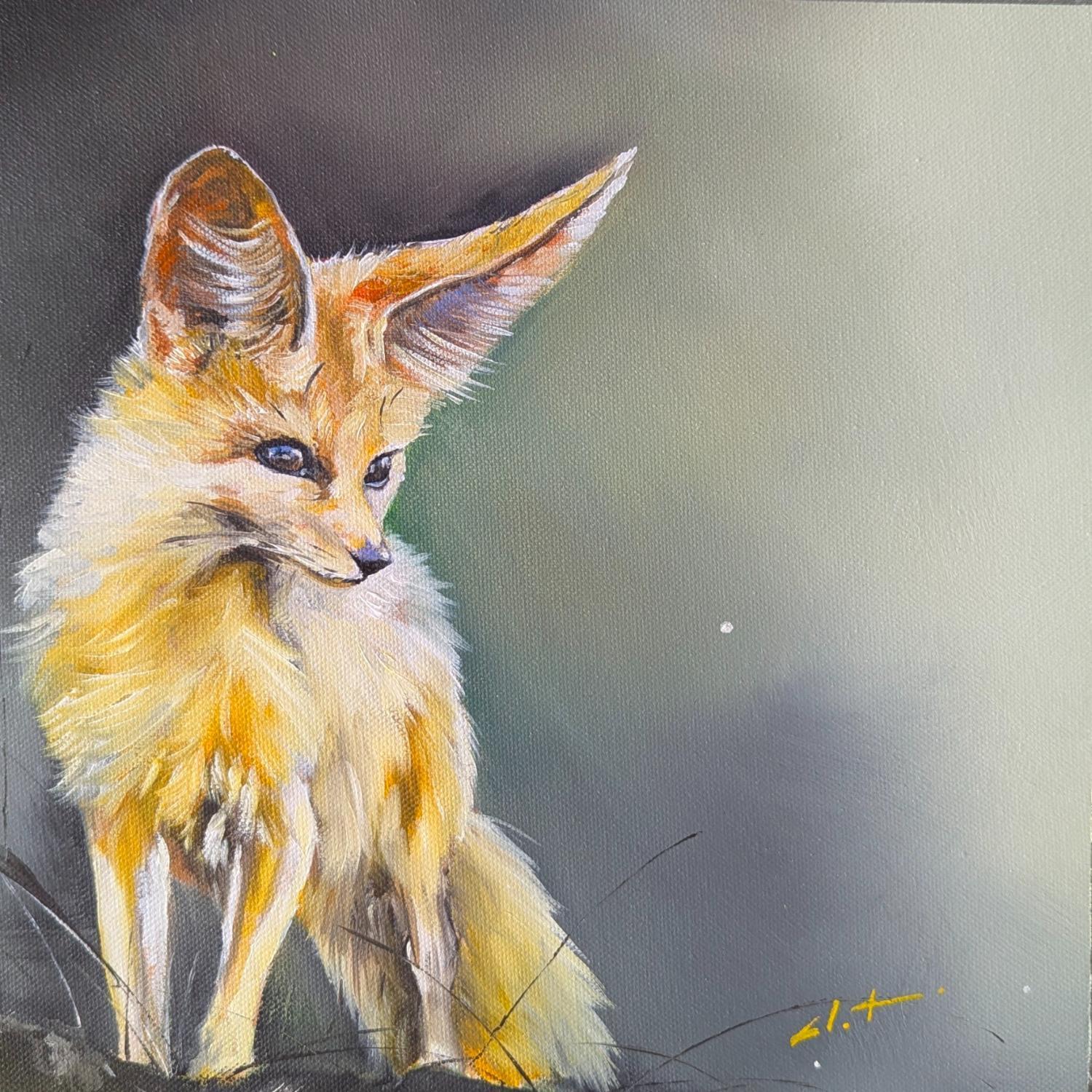 L'artiste a utilisé différentes techniques pour créer cette peinture petit format sur Toile de style Figuratif sur le thème Animaux.