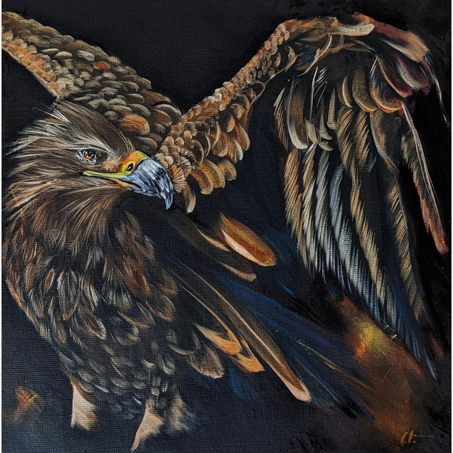 L'artiste a utilisé la technique Huile pour créer cette peinture petit format sur Toile de style Figuratif sur le thème Animaux.