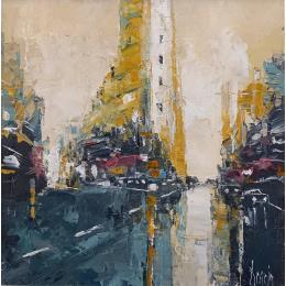 L'artiste a utilisé la technique Huile pour créer cette peinture petit format sur Toile de style Figuratif sur les thèmes Architecture, Urbain.