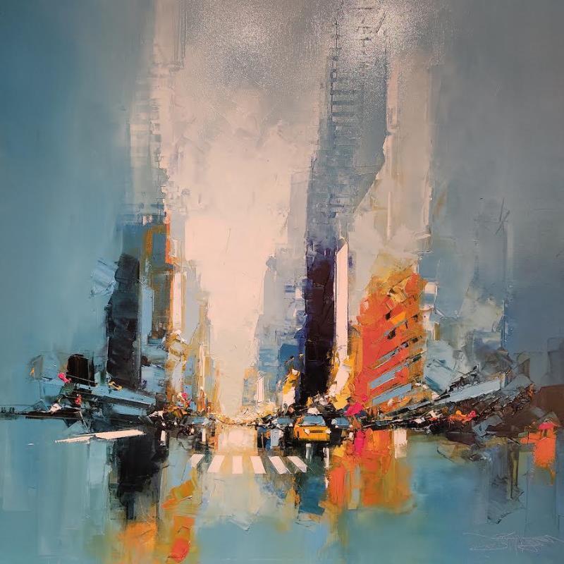 De sa première vie d'infographiste, Daniel Castan a conservé sa discipline de travail, un goût de l'urgence et une passion pour les mégalopoles. C'est durant cette période que Daniel voyage beaucoup à New York et Hong Kong et qu'il y développe une fascination pour les univers urbains et les perspectives démesurées. Il essaie dans ses toiles de recréer ces ambiances graphiques. Diplômé des beaux-arts, c'est à la quarantaine qu'il décide enfin d'assouvir son besoin de création. Ne s'embarrassant pas de réflexions inutiles, Daniel Castan entretient avec la peinture un rapport empreint de physicalité. Sa perspective est celle d'un coureur de fond qui s'entraîne de nombreuses heures chaque jour, et va obstinément de l'avant. Pour lui, seules comptent la couleur, la matière, et c'est presque un rapport de force qu'il entretient avec la toile : il n'attend jamais une illusoire inspiration, ses œuvres naissent de travail et de persévérance.