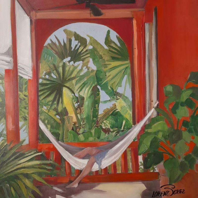 Hamac aux caraibesPeinture Hamac aux caraibes par Lorene Perez | Tableau Figuratif Huile