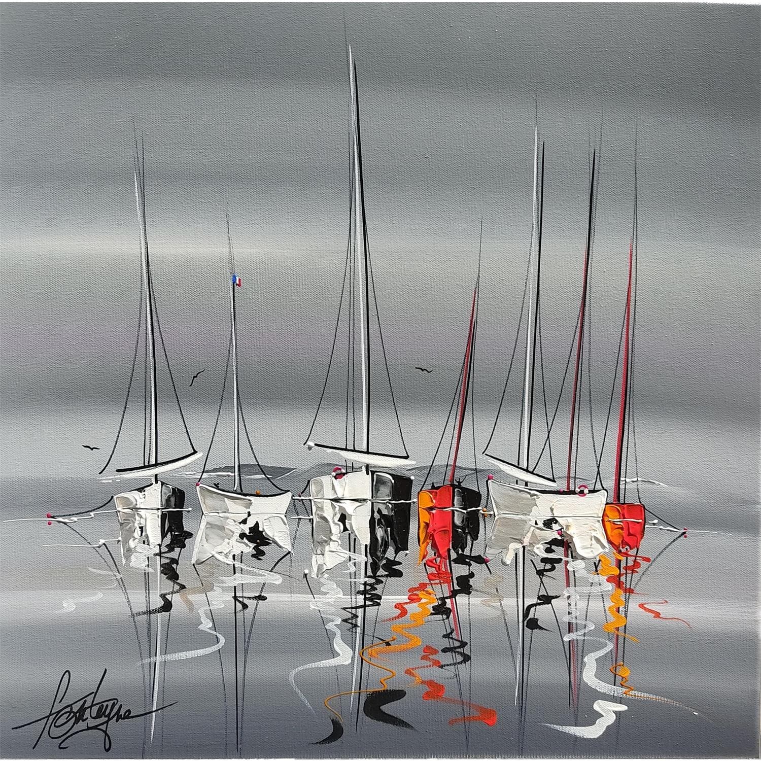L'artiste a utilisé les techniques Huile, Acrylique pour créer cette peinture grand format sur Toile de style Figuratif sur le thème Marine.