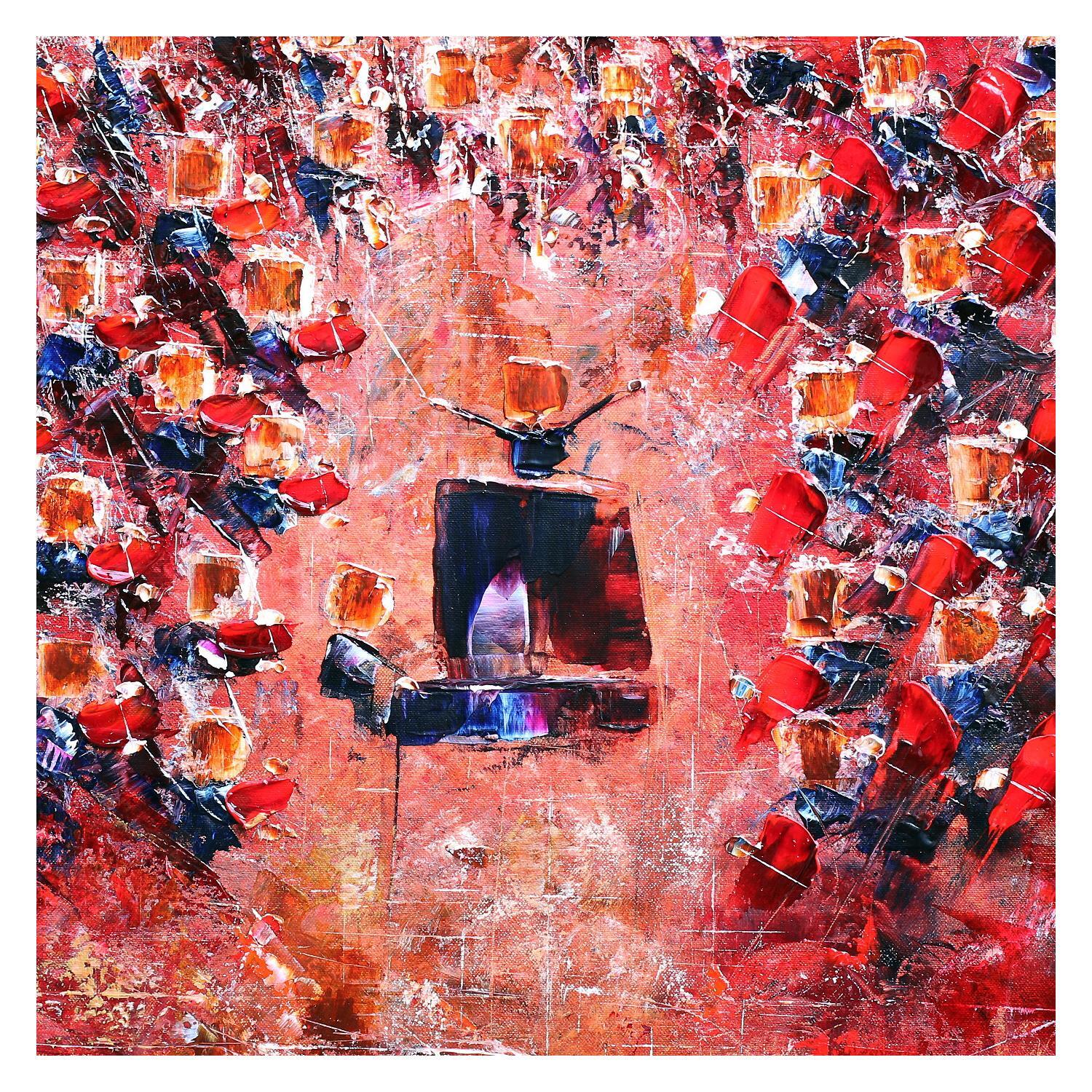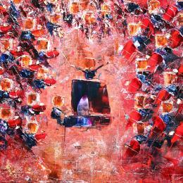 Le concert avec pianiste est une œuvre qui oscille entre abstraction dans la périphérie et art naïf dans le centre et la représentation des instrumentistes. Le motif est peint au couteau et à l'huile et joue sur sur une harmonie de couleurs chaudes (nuances de rouge, orange) et métalliques (or, cuivre, et argent...). Les têtes carrés des personnages s'inspirent de la série "Parc des Princes" de Nicolas de Staël. La mise en scène met en valeur le pianiste central et joue sur la circularité (la formation) et la verticalité (le fond). Le chef, isolé et dans une posture magistrale, conclut la partie basse de l’œuvre. L'ensemble présente une tonalité dite flamboyante ou baroque... selon les sensibilités