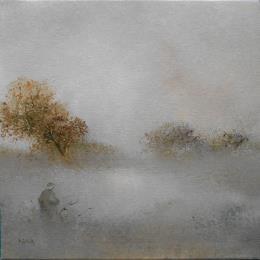 L'artiste a utilisé la technique du glacis pour créer cette peinture petit format au style singulier.
