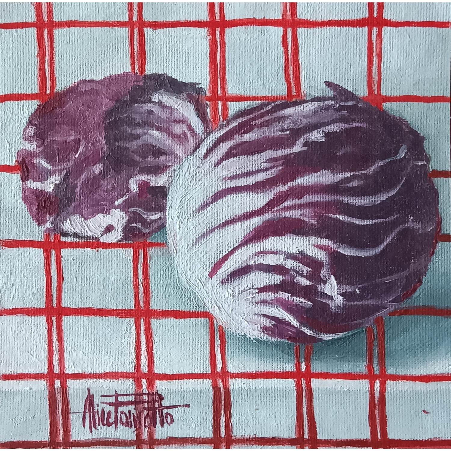 Cette œuvre d'art contemporain unique et originale "Radicchio su bianco" a été créée par l'artiste contemporaine Parisotto Alice.