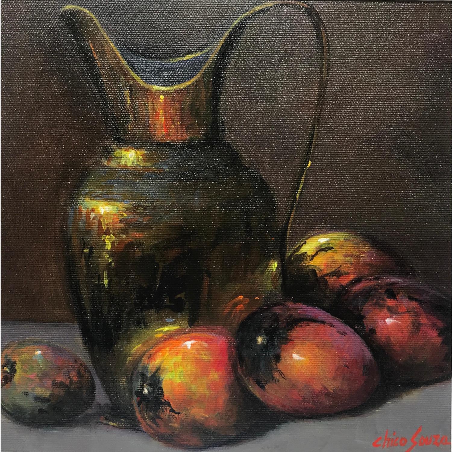 Latâo dourado e mangasPeinture Latâo dourado e mangas par Chico Souza | Tableau Figuratif Natures mortes Huile